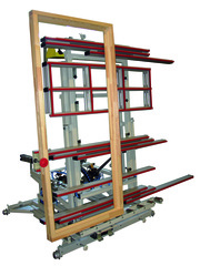 Dieser Flügelmontagetisch ermöglicht eine rationelle Fertigung der Fensterflügel. Der Tisch bietet höchsten Bedienungskomfort, optional mit Glasleistenzuschnitt.