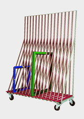 - fahrbar durch 4 Lenkrollen, davon 2 mit Stoppeinrichtung