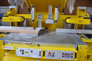 Kapp- und Gehrungssäge mit präziser Positionierung über Längenmessanschlag Exenso Comfort, Pusher-Version, vollautomatischer Programmablauf.