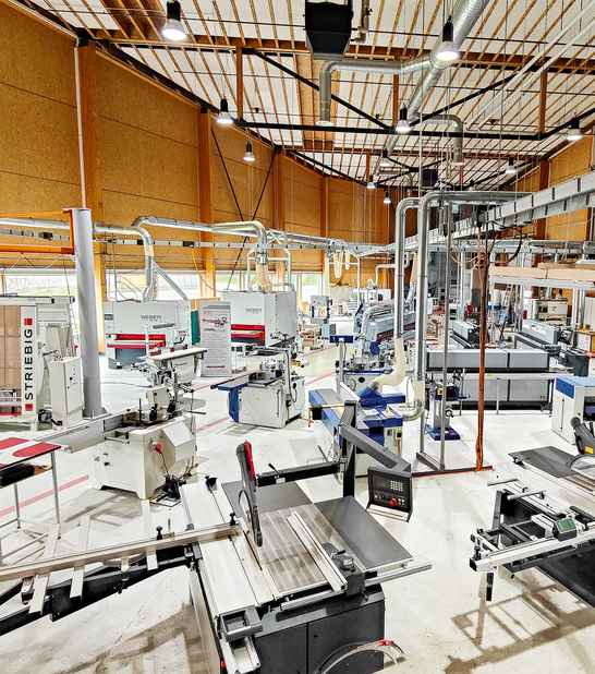 Hier stehen Ihnen jederzeit rund 50 Maschinen aus allen Bereichen der Holzverarbeitung voll einsatzbereit zur Verfügung. Ob Säge-, Hobel-, Schleifmaschine oder CNC-Anlage: Bei uns können Sie jede Maschine direkt testen und sich ein eigenes Bild machen.